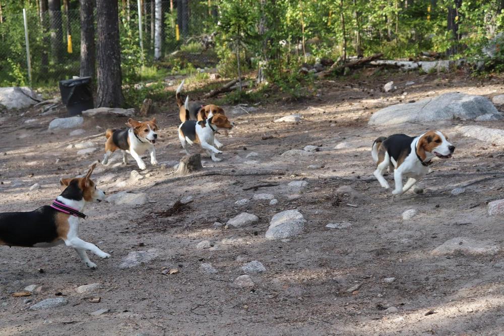 Vauhdin lisäksi mahtui mukaan myös niitä “vaarallisia tilanteita” eli ihan aitoja beagle-seikkailuja – mutta ennen kaikkea paljon iloisia hännänheilutuksia ja yhteisiä hetkiä.